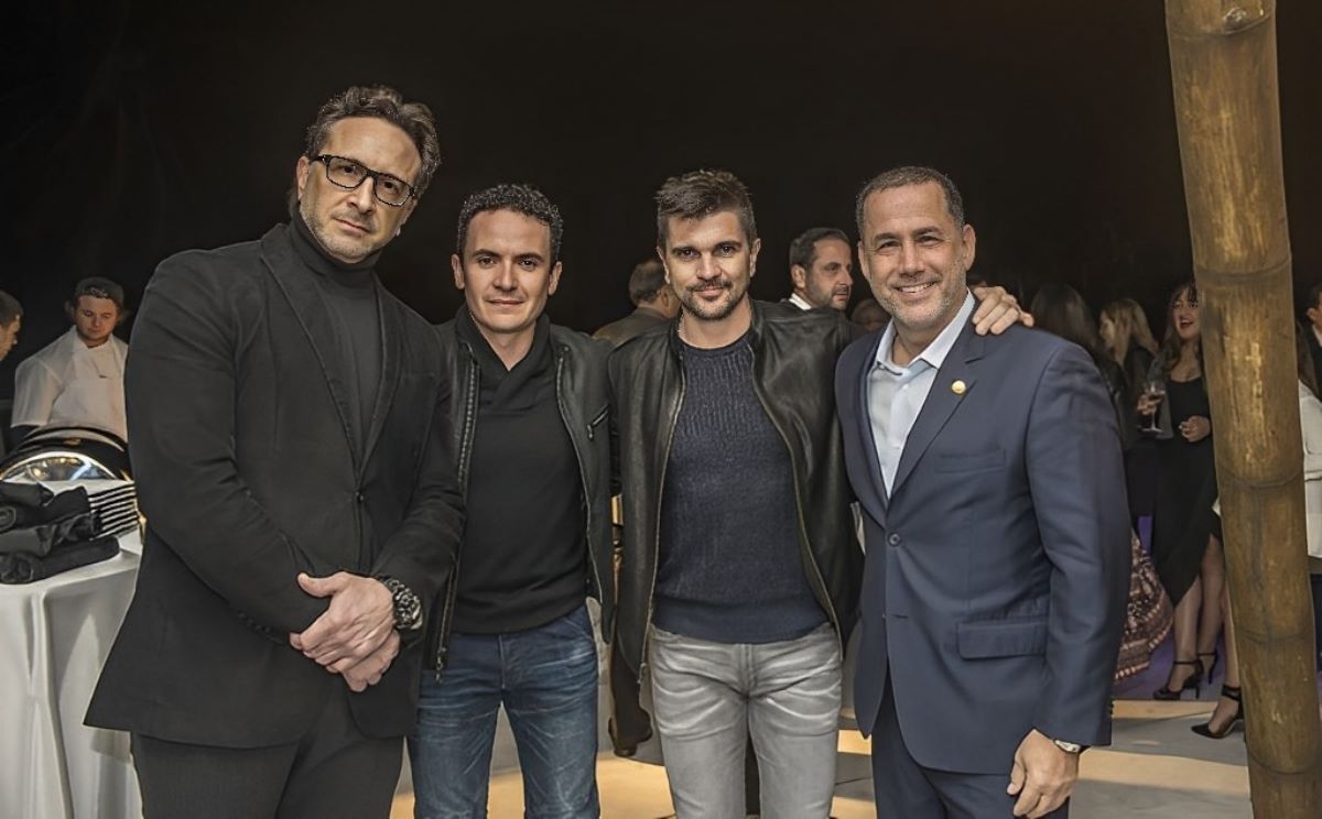 Julio Borges Riquezes, los cantantes Fonseca y Juanes, y Phillip Levine (alcalde de Miami Beach 2013-2017), durante celebración, en el año 2016