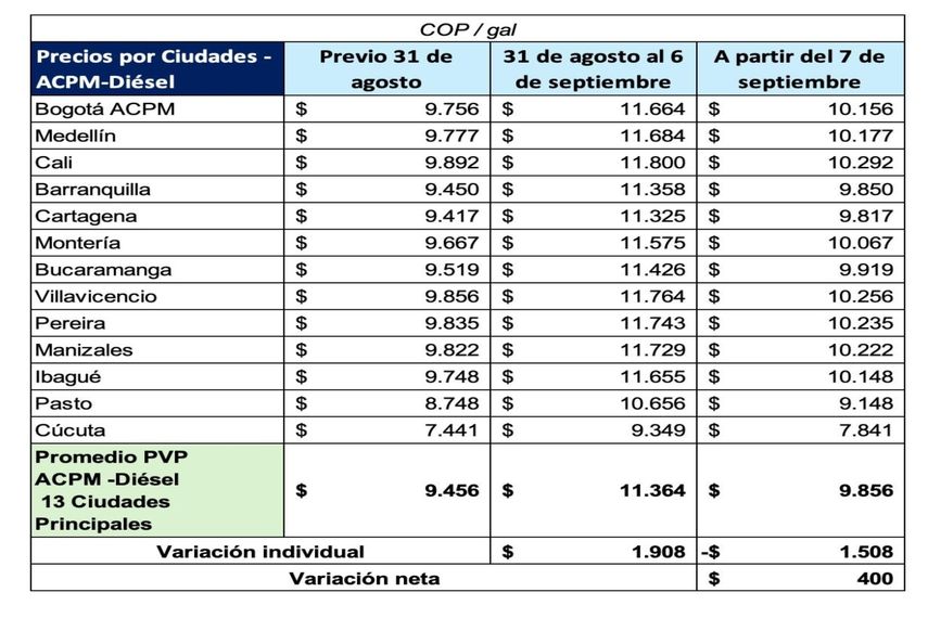 Colombia está entre los países con la gasolina más barata del mundo, pese a que se han hecho ajustes graduales desde octubre de 2022. Sin embargo, Acosta refirió que el Gobierno decidió mantener congelado el precio del diésel. Se calcula que si se hubiese subido con el promedio de la inflación el galón costaría hoy 13,200 pesos.