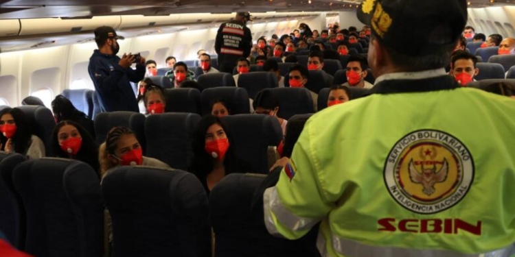 El grupo de migrantes llegó al aeropuerto internacional Simón Bolívar de Maiquetía, que sirve a Caracas, en una aeronave operada por la estatal venezolana Conviasa, según imágenes oficiales.
