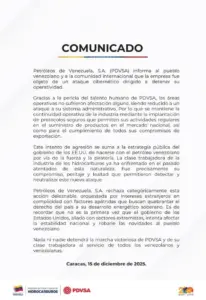 La directiva de la petrolera manifestó su repudio ante el incidente, rechazando «categóricamente» lo que describió como una «acción deleznable». El texto oficial sostiene que la ofensiva digital fue «orquestada por intereses extranjeros en complicidad con factores apátridas que buscan quebrantar el derecho del país a su desarrollo energético soberano».