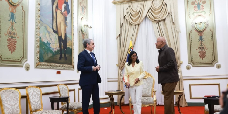 El equipo de prensa de la Presidencia venezolana indicó en una nota oficial que la líder chavista recibió al expresidente español «como parte de la diplomacia bolivariana de paz que afianza la hermandad, el diálogo y la solidaridad».