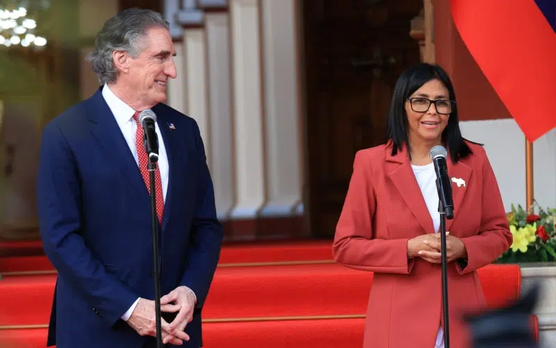 La presidenta encargada, Delcy Rodríguez, sostuvo este miércoles un encuentro con el secretario del Interior de Estados Unidos, Doug Burgum, con el propósito de tratar asuntos vinculados a la cooperación energética y al impulso del sector minero en el país.