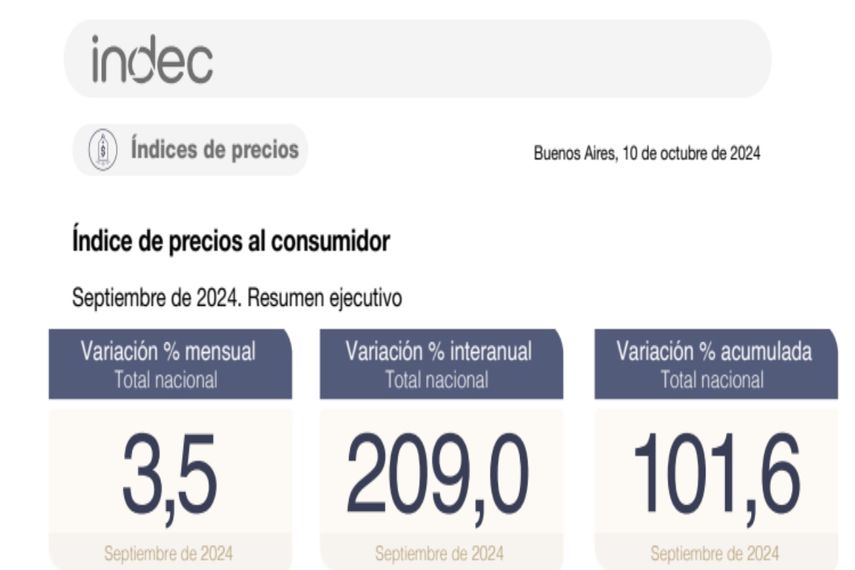Si bien es cierto que el general del Índice de precios al consumidor registró un alza mensual o puntual de 3,5% en septiembre llegó a acumular en el año (enero-septiembre) una variación de 101,6%. En la comparación interanual (de septiembre 2023-septiembre 2024) el incremento alcanzó el 209,0%. Pero un IPC mensual como el que ocurrió este último mes abre las posibilidades de ir bajando esas cifras acumuladas para 2025.